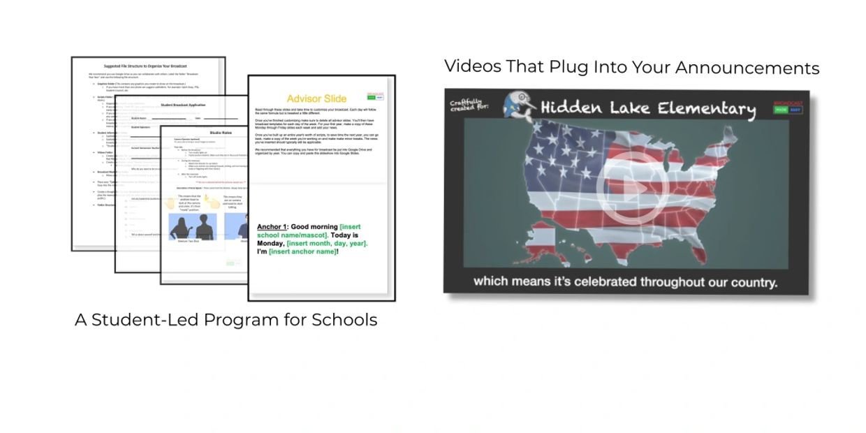 Videos are MP4 files and can be dropped into morning announcements, given to teachers to be used in classrooms for circle time/lessons, used on campus screens (front office, cafeteria, hallways).